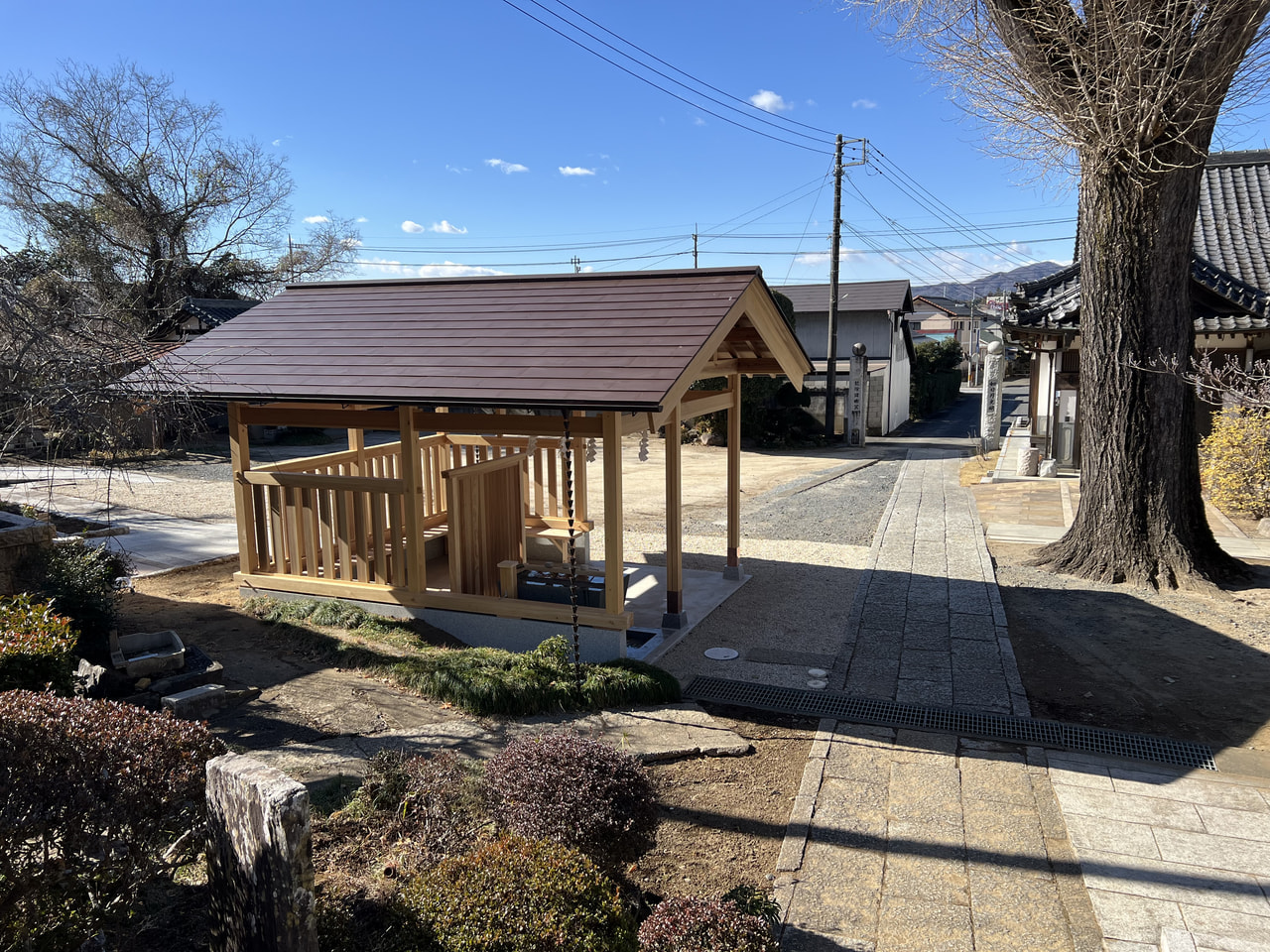 1.既存手水舎配置を踏襲し、門・本堂・八幡台櫓それぞれへの動線の起点としての手水舎を再構築しました。新手水舎の出入口を門方向と本堂方向の二方向へと開放し、参詣者往来の円滑化を促しました。