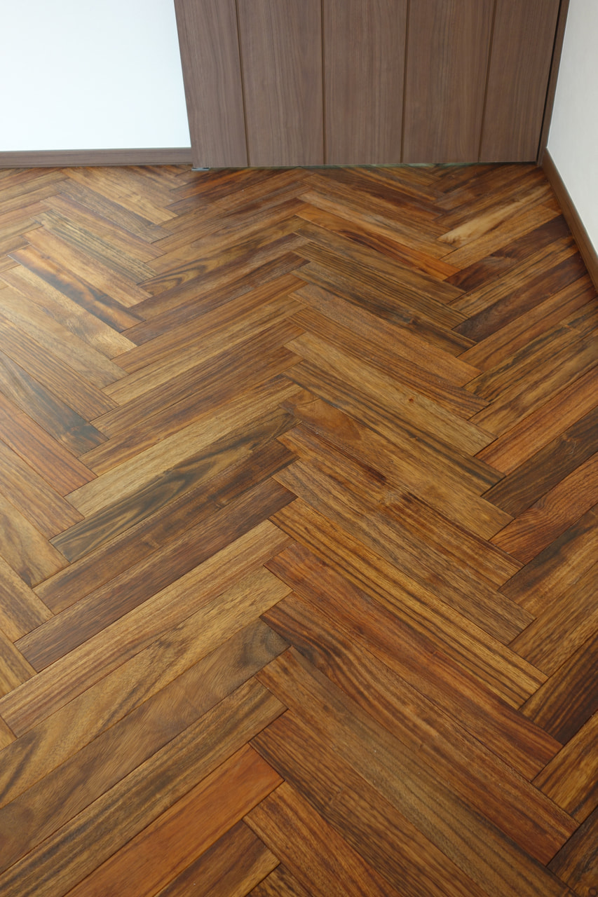 居室床は、「ヘリンボーン張りのムク材」を採用し、シックで上質な空間を演出しております。